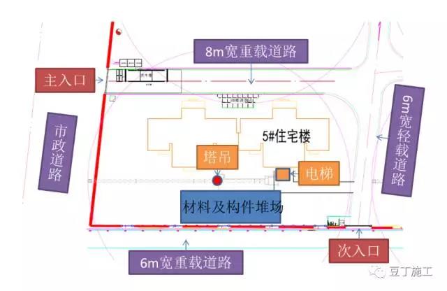 道路布置:現(xiàn)場施工道路需盡量設(shè)置為環(huán)形道路,其中構(gòu)件運輸?shù)缆沸韪鶕?jù)根據(jù)構(gòu)件運輸車輛載重設(shè)置成重載道路;道路盡量考慮永臨結(jié)合并采用裝配式路面。